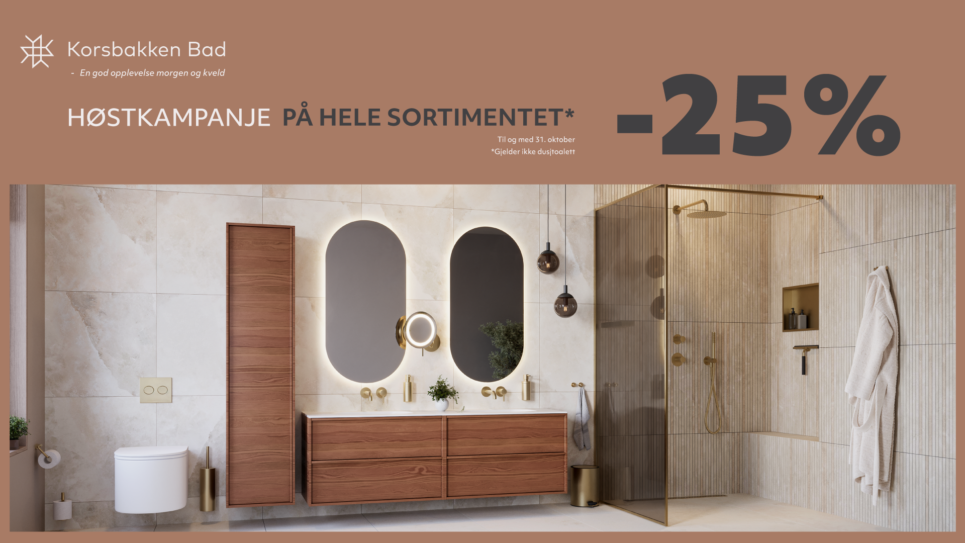 Se mer Bollevasker -25% Se mer Servantbatteri -25% Se mer Vi har alt til badet! Møbler Se mer dusjsett Se mer Dusj Se mer servant batteri Se mer toalett Se mer badekar Se mer Kupp priser på utvalgte Oras produkter! ORAS Oras Optima Style Servantkran 2605FH 3 195,- 2 490,- ORAS ORAS OPTIMA STYLE TAKDUSJ 7192N MED RAIN SHOWER KROM 13 495,- 9 490,- ORAS ORAS DUSJSETT OPTIMA STYLE 2790N KROM 2 495,- 1 995,- ORAS ORAS OPTIMA STYLE 7160N DUSJBATTERI KROM 3 995,- 2 990,- ORAS ORAS Optima Style 7140N BADEKARBATTERI KROM 4 995,- 3 490,- ORAS Oras Optima Style Servantkran 2605FH-33 SORT MATT 4 495,- 3 250,- ORAS ORAS NOVA TAKDUSJ MED RAIN SHOWER 7402-33 sort matt 14 895,- 8 990,- ORAS ORAS OPTIMA STYLE DUSJSET, SORT MATT 3 195,- 2 250,- ORAS ORAS OPTIMA 7160N-33 STYLE DUSJBATTERI SORT MATT 5 495,- 3 750,- ORAS ORAS Optima 2638AF-33 KJØKKENKRAN SORT MATT 5 495,- 3 990,- Toaletter fra Villeroy & Boch til fast lavpris! 2 790,- Kjøp her 5 490,- Kjøp her 7 990,- Kjøp her På jakt etter ny varmtvannsbereder? Høiax Connected Spar opptil 5000,- ved installasjon Kjøp her 5 995,- Oso Saga 200 l bereder Kjøp her Kjøkkenbatterier til fast lavpris! 1 790,- Kjøp her 2 490,- Kjøp her 3 750,- Kjøp her 4 690,- Kjøp her Pusse opp badet? Vi tilbyr fagmessig utførelse av ditt nye bad! Bestill gratis befaring her!