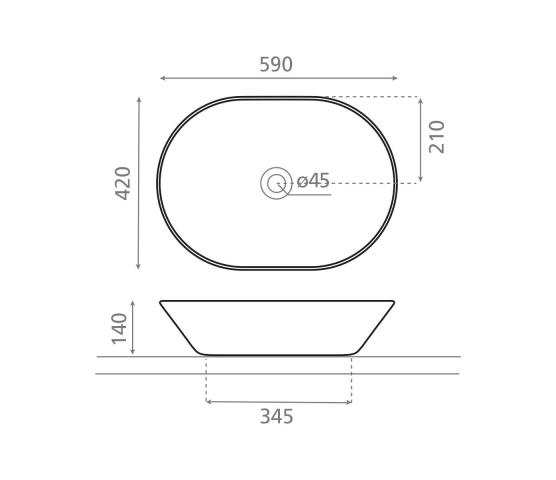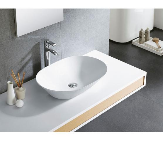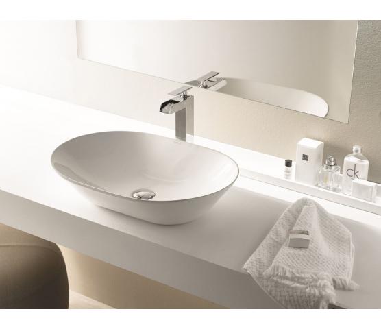 Stor bolleservant i tynt porselen for montering på plate. Uten overløp. Mål 588x422x138mm
