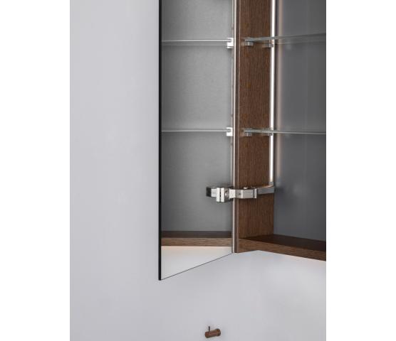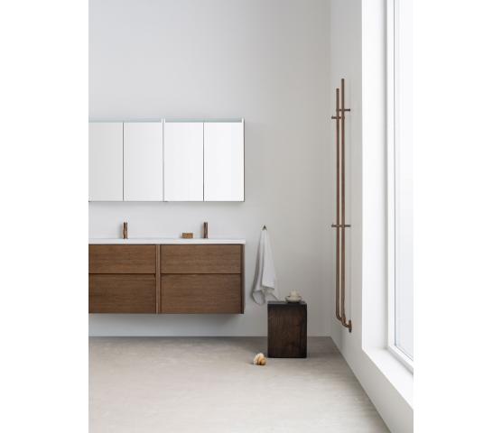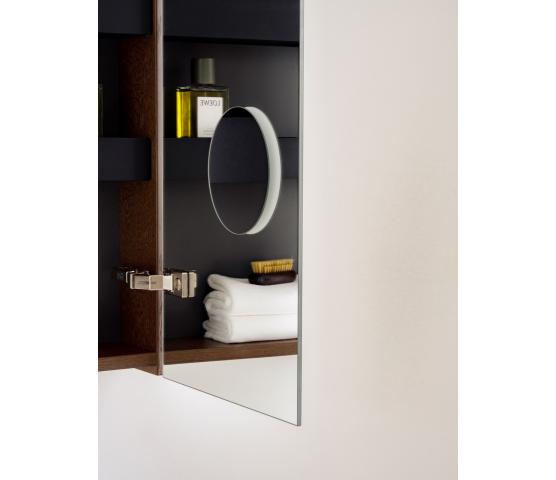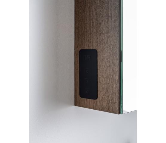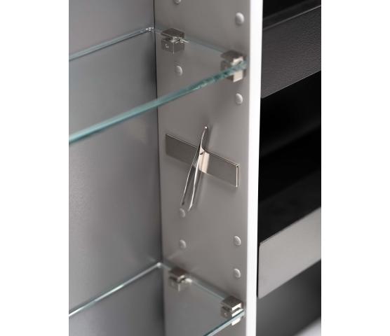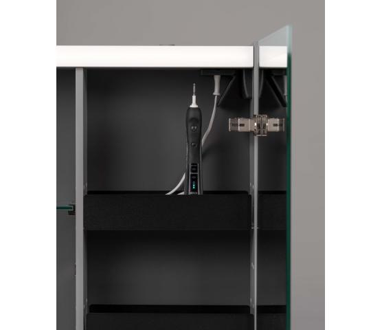 Stage Plus er vårt mest utstyrte speilskap. Det har de samme funksjoner og tilvalg som det noe speilskapet Stage, det vil si stikkontakt, magnetholder for småting og dobbelsidige speildører. Hyllene glass er flyttbare, noe som gjør speilskapet meget tilpasningsdyktig. Plus-modellen kommer med innvendig belysning samt et touchpanel på venstre utside hvor du kan regulere lysstyrke og fargetemperatur. Slå av lyset og kom tilbake til samme innstilling neste gang du slår på. I breddene 80-120 cm kommer speilskapet med en strømseksjon med flyttbare hyller som er perfekte for oppbevaring av småting. Tilvalget Plus Zoom gjelder forstørrelsesspeil x5 på innsiden av speildøren. Valgfri plassering.