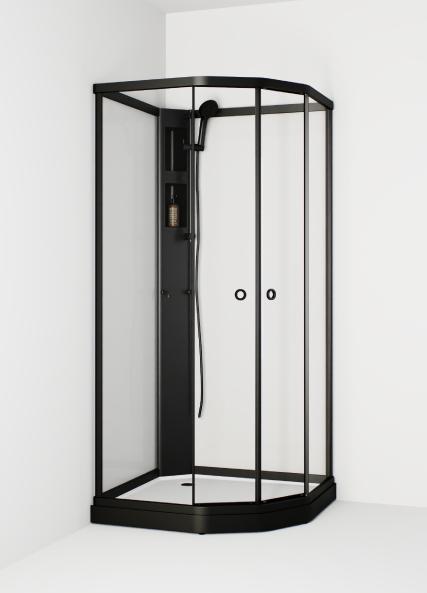 MACRO FLOW SEMI DUSJKABINETT 90x90 SORT, BAKVEGG KLAR
