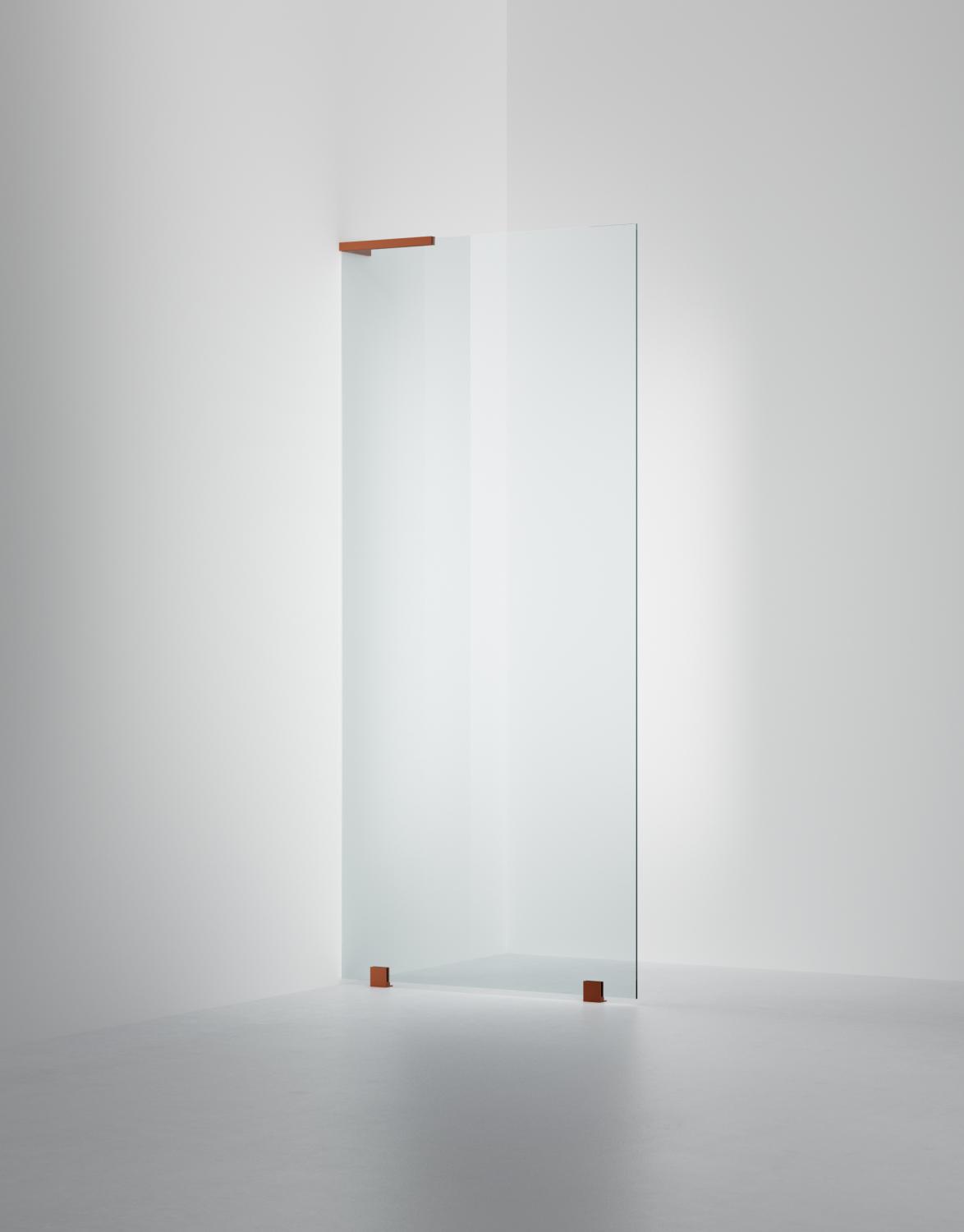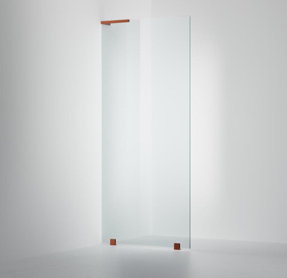 Lekker fastvegg som leveres i målene 800 eller 900 mm. Kan også bestilles som måltilpasses innen størrelsen 400-1200 mm. Ta kontakt vis det er ønskelig. Her er modellen i klart glass og Brushed Bronze profil.