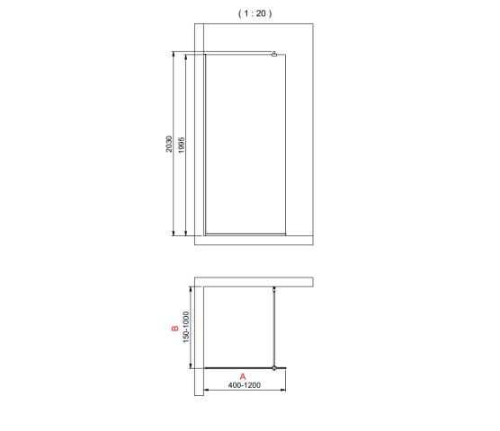 Høyde: Standardhøyde 2000 mm øvre kant glass, 2035 øvre kant stang.
