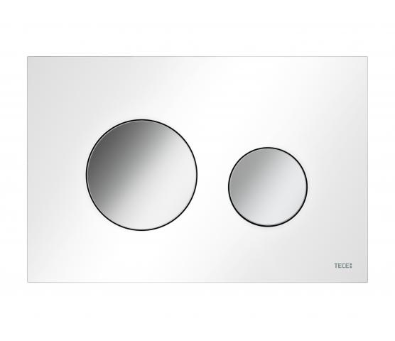 TECEloop betjeningsplate for to spylevolum Betjeningsplate for TECE sisterner, for topp- eller frontmontasje. Lavtbyggende (6 mm) betjeningsplate i kunststoff. Inklusive feste-materiell. Kan ikke monteres plant med vegg.