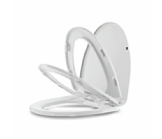 Sete i hvit hardplast med faste hengsler, eventuelt sete med Quick Release (hurtigkobling) eller faste hengsler.