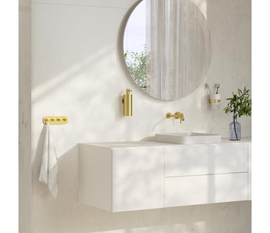 Baderomskroken har en solid messingkjerne som aldri ruster. Du får en ekstra elegant følelse av et skjult feste som ikke utsettes for vann. Få et nytt utseende på badet ditt ved å dekorere det med matchende produkter fra den tidløse HOME-serien.