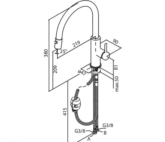 Iris kjøkkenkran med uttrekkbar tut kombinerer moderne design med høy funksjonalitet til hverdagsbruk. Den uttrekkbare slangen gjør det enkelt å skylle oppvask, rengjøre hele kummen og fylle store kjeler. Kranen har to stråletyper – vanlig vannstråle og dusjfunksjon – der dusjstrålen er spesielt praktisk ved oppvask og skylling.