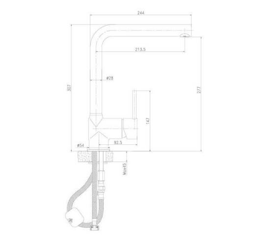 - Høyde 307 mm (topp kran)
