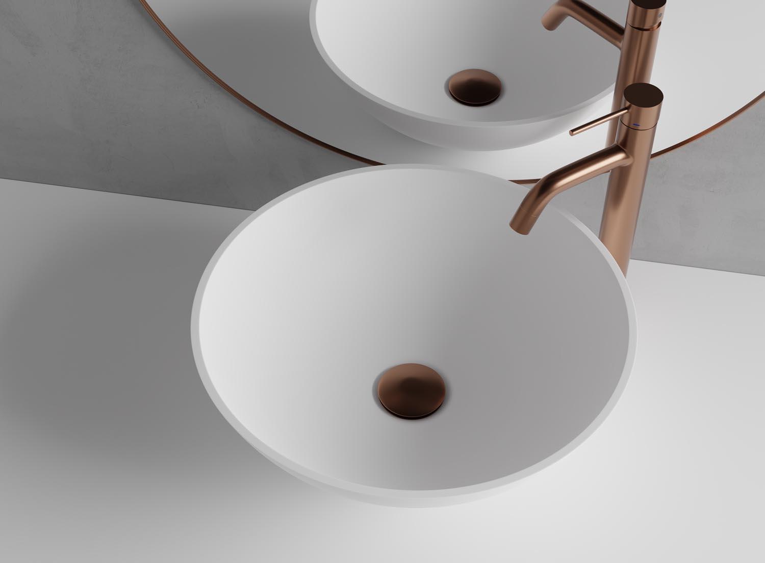 Servantbatteriet er fargematchet med ARC Original og håndkletørkeren LINE i Unleashed-finishene Brushed Stainless, Brushed Bronze og Brushed Brass.