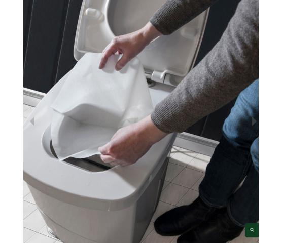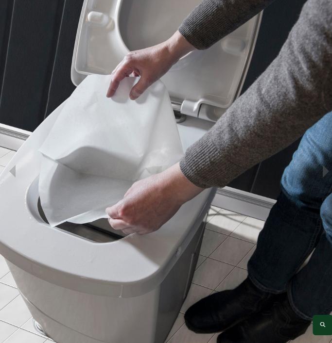 En pose skal alltid settes i toalettet for å sikre at avfallet faller ned i forbrenningskammeret. Trykk på knappen etter toalettbesøket og forbrenningen vil igangsettes - enklere blir det ikke! Avfallet forsvinner automatisk ned i forbrenningskammeret når man starter en forbrenning med trykknappen på toppen av toalettet.