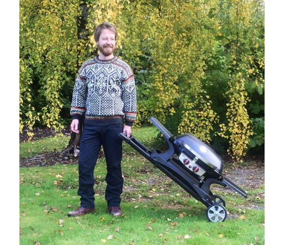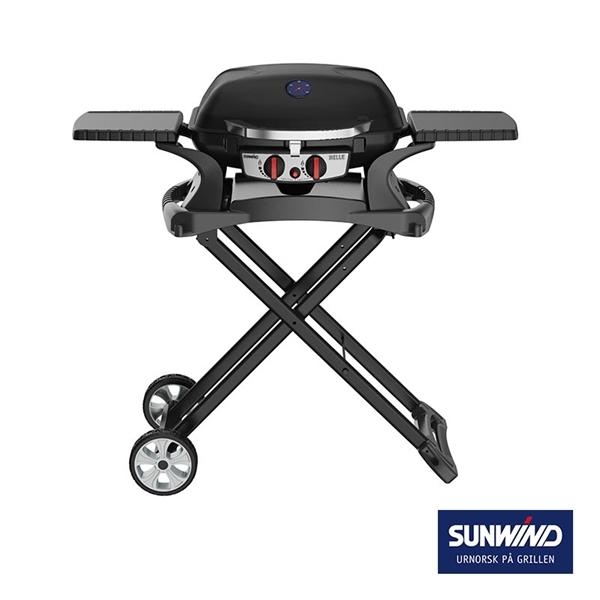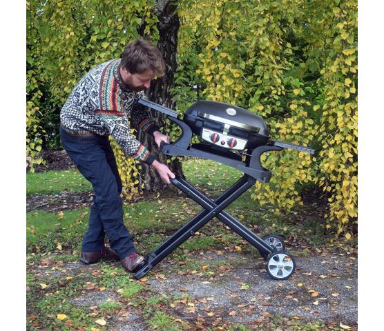 Gassgrill Helle er en nett, portabel grill som er spesielt godt egnet for deg med liten plass. Sammenleggbart stativ med 2 hjul følger med.