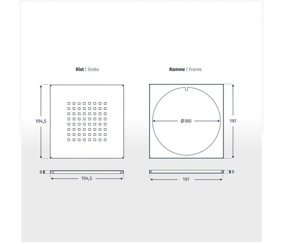 Slidedrain Slukrist Kvadrat i matt svart er en slukrist til flisbelagt gulv. Risten har målene 197 x 197 mm slik at den passer med 200 x 200 modulfliser. Risten bygger 9 mm høyde og består av 2 komponenter; en ramme og en rist. Begge komponenter er i rustfritt stål.
